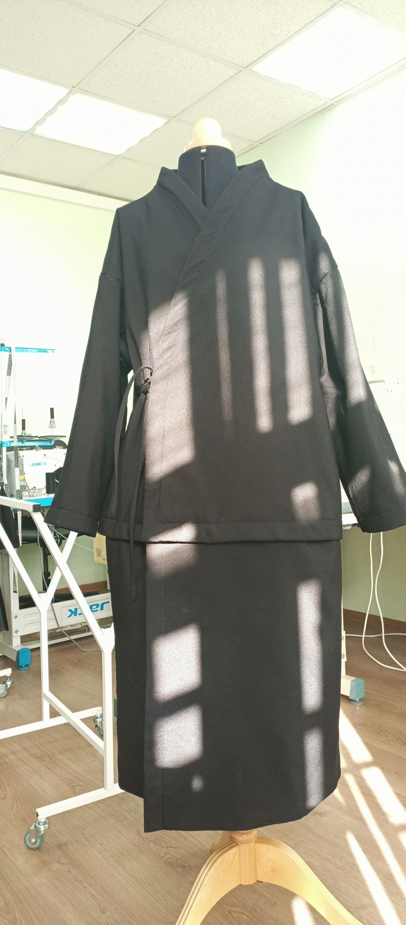 Оборудование : Jack прямо строчки автомат, четырехнитки( оверлок), плоскошовная машинка, вышивальная. Стол гладильный с отсосом, парогенератор с утюгом промышленным.
